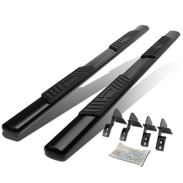 Construction and Appearance. Crafted from heavy-duty mild steel, these side step bars are built to withstand daily wear and tear. The matte black finish provides a sleek look while offering rust-resistant properties to ensure long-lasting durability. The non-slip ABS plastic step pads enhance safety by providing a secure grip, even in wet conditions.