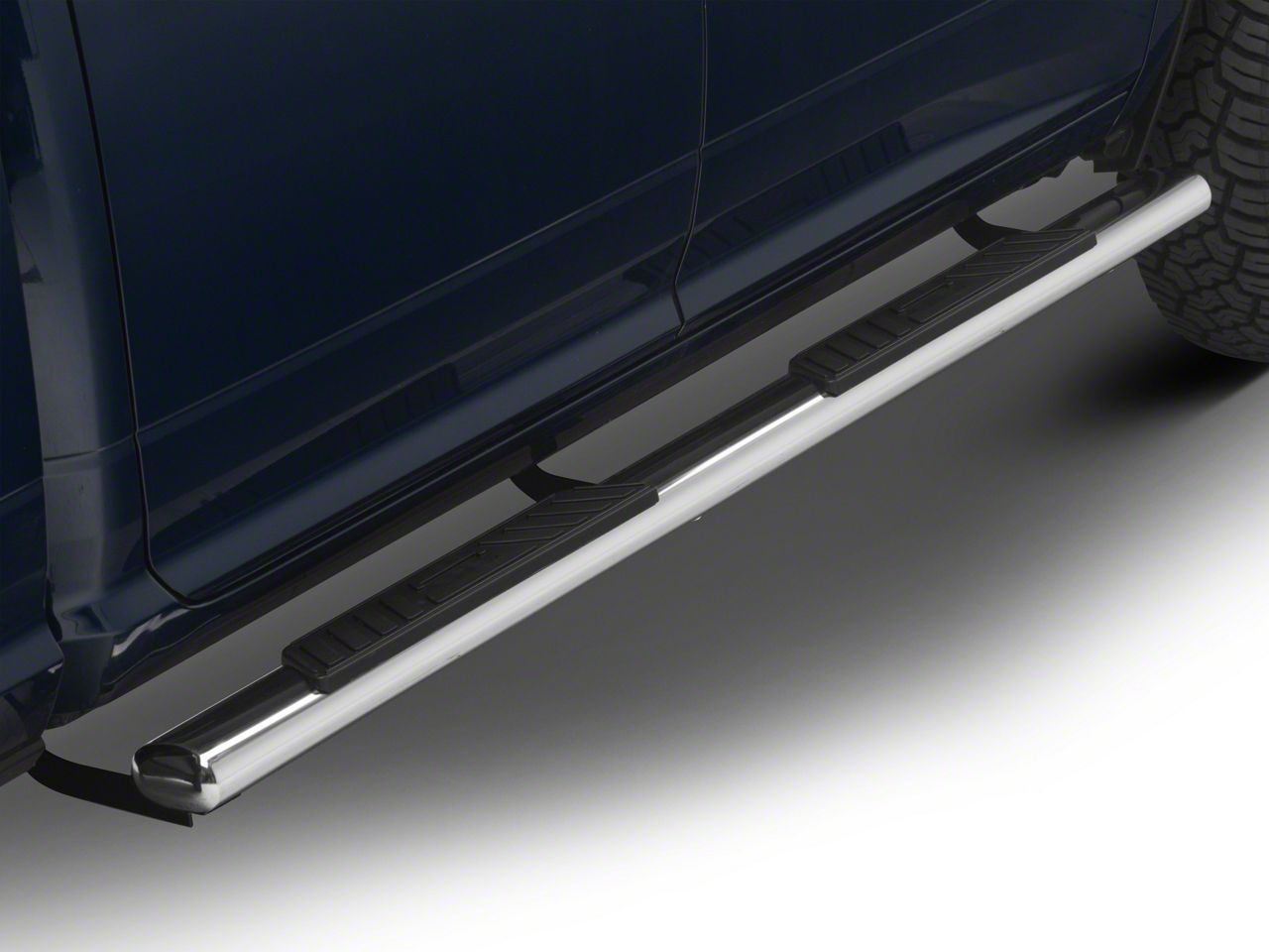 Construction and Appearance. Constructed from premium stainless steel, these side step bars are durable and rust-resistant. They feature an eye-catching mirror-polished stainless steel finish that not only looks great but also withstands the elements.