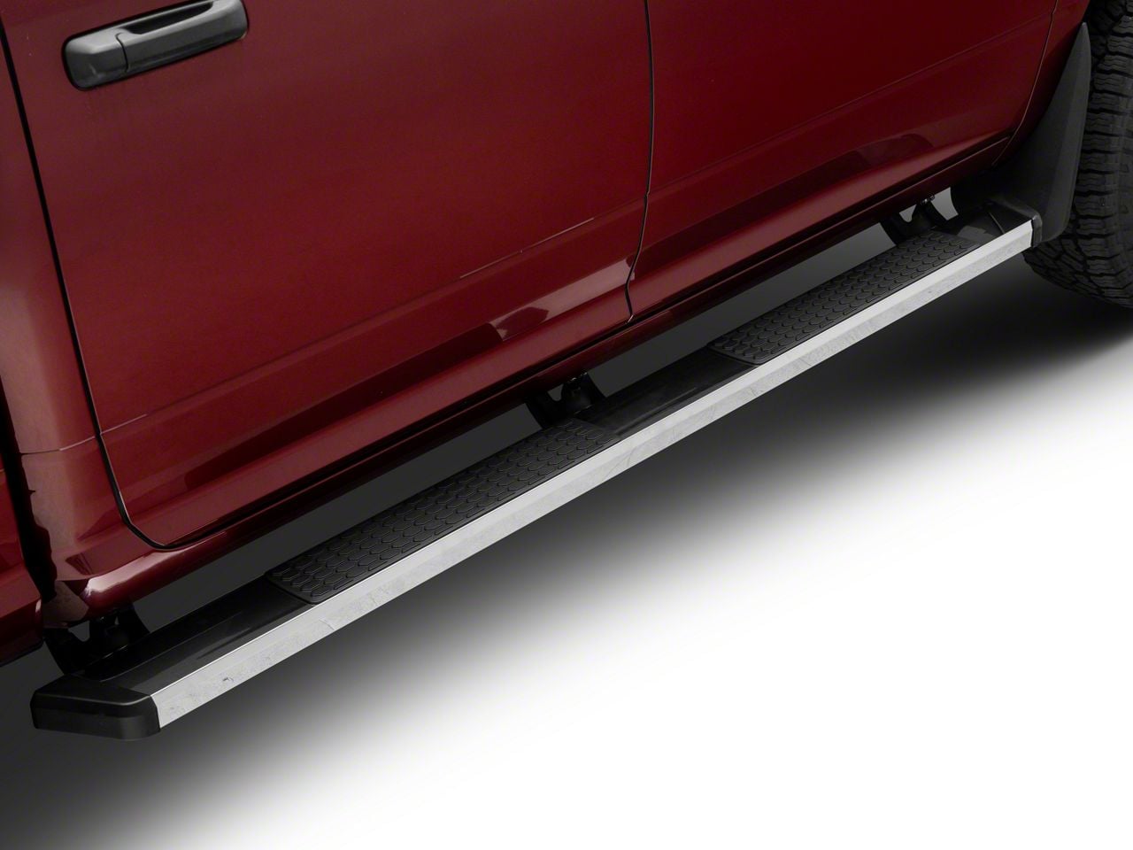Sleek and Durable Accessory for Enhanced Vehicle Accessibility. Upgrade your RAM 3500 Crew Cab with these premium running boards. Constructed from high-quality stainless steel and featuring ABS plastic end caps, these boards offer both durability and a sleek look with their polished chrome finish. The five-inch wide boards include matte black finish honeycomb-surfaced stepping pads, providing a secure, non-slip surface for safe entry and exit from the vehicle. With a weight capacity of 500 pounds, they are built to support heavy use.