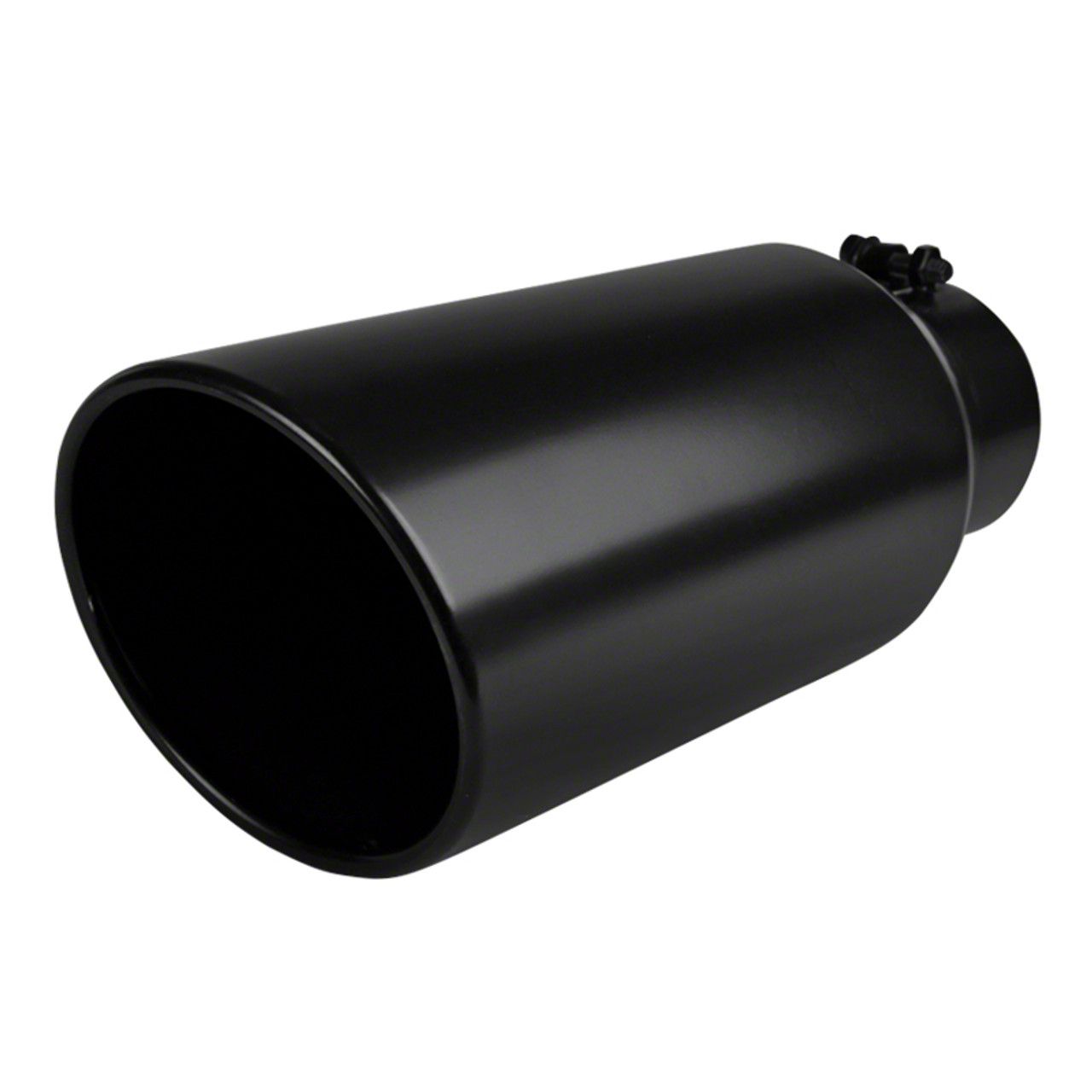 Aggressive Styling. Add aggressive styling to your truck with a 6.0-Inch Black Angled Cut Rolled End Round Exhaust Tip. Sold individually, this Exhaust Tip was designed for use on vehicle's equipped with a 4-inch exhaust system. This black Exhaust Tip is the perfect appearance upgrade for your truck.