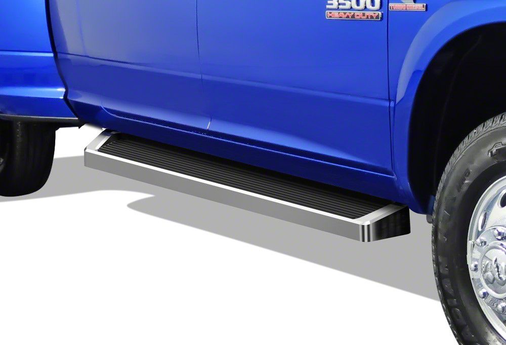 Sleek Style for Convenient Access. Choosing the right running boards for your RAM 3500 can go a long way in giving it a sleek new style accent. As far as these go, these 6-Inch iRunning Boards with a Polished Finish is perfect for your truck. These running boards combine a polished look with a sculpted wedge design and anti-skid stepping pads that run their length. These design elements result in a pair of boards that offer both sophisticated style and convenient access. Moreover, these running boards’ heavy-duty build allows them to function as side protection against kicked up debris.