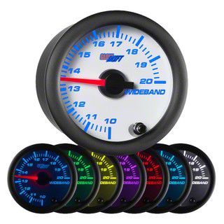 GlowShift’s White 7 Color Series Analog Wideband Air/Fuel Ratio Gauge is an essential tool for closely monitoring and fine-tuning your performance vehicle’s air-to-fuel ratios from 10 ~ 20 AFR quality values. By monitoring the output you’ll be able to determine how rich or lean your engine is running at any given time with precise readouts. Available for use on any vehicle that runs unleaded fuel, this wideband gauge allows you to carefully map out your vehicle’s air/fuel ratios through the range of RPM and manifold pressure.