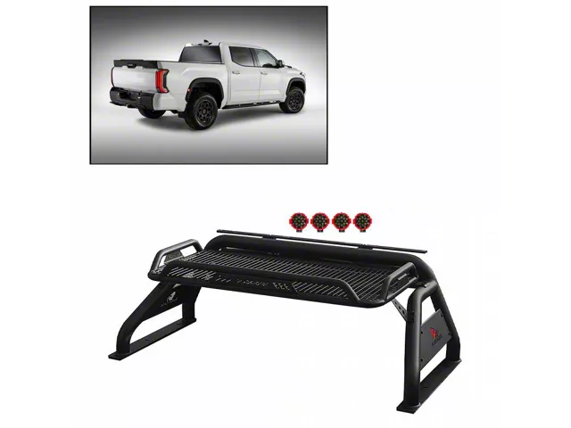 Additional Illumination. This Atlas Roll Bar also comes with 4 7-inch red round LED pod lights that are powered by 17 LED lights per pod. Other auxiliary headlights can also be mounted above the cab roofline if needed.