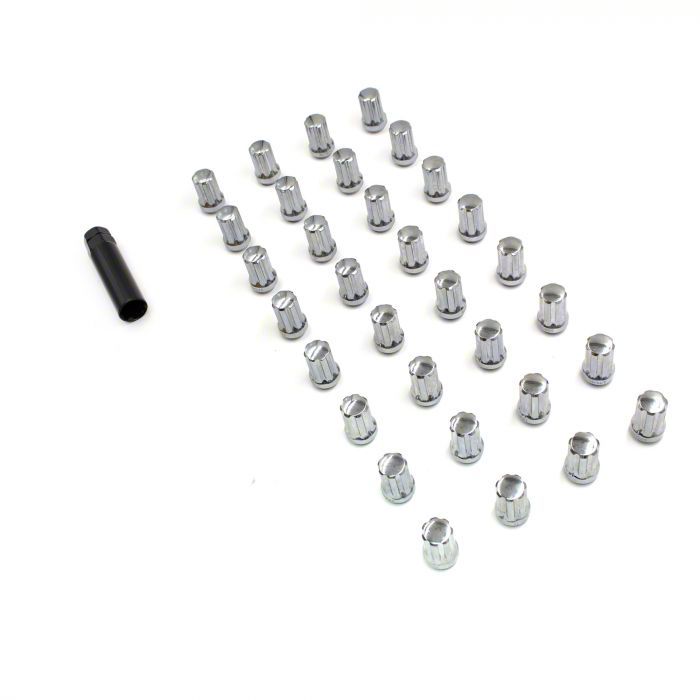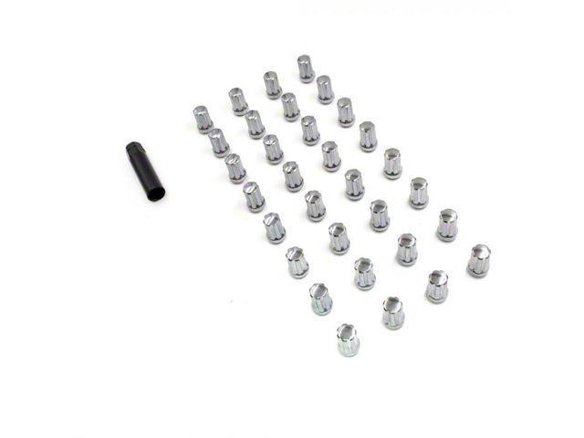 Premium-Level Chrome Lug Nut Kit. Your work truck’s wheels are only as reliable as the lug nuts that hold them in place. That’s what this Chrome 7-Spline Lug Nut Kit; 9/16-Inch; Set of 32 is engineered to provide. It features lug nuts with a narrower design to fit a range of aftermarket wheels to ensure hassle-free installation. With this lug nut kit, you can rest assured of safe driving anywhere the road may lead you.
