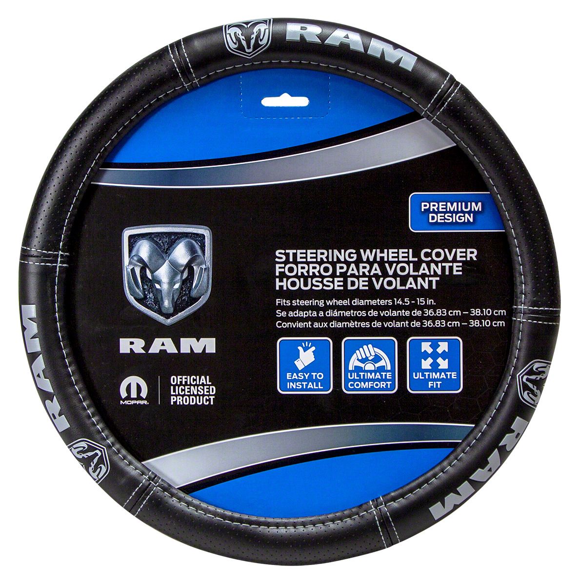 Durable and Stylish. Made from high-quality leather-like material, this cover is built to last. Its black finish and iconic RAM logo make it both functional and stylish. The universal design ensures compatibility with most steering wheels for quick and hassle-free installation.