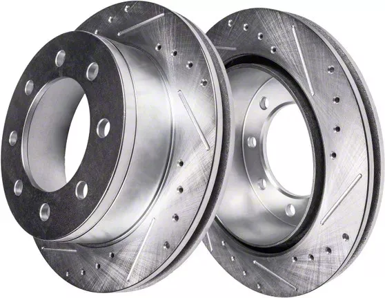 Performance Brake Upgrade. These Drilled and Slotted 8-Lug Rotors are designed to restore and enhance braking performance on your Dodge RAM 3500. Sold as a Rear pair, they are a high-quality replacement that improves heat dissipation, reduces brake fade, and ensures smooth stopping power in all driving conditions.