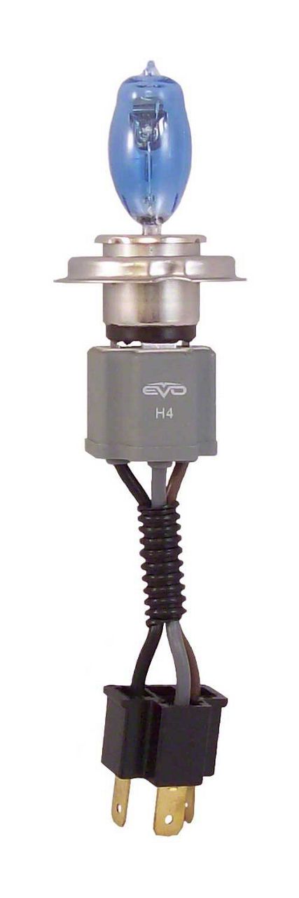 EVO Formance Alfas Maximum Intensity H4 Halogen Headlight Bulbs are the best approximation to a full HID Xenon lighting system. Alfas can be installed on any vehicle without modifications, complications, or the excessive costs of an HID system. Their maximum illumination and Intense-White color is due to the quality of materials, the unique combination of gases, and a special tungsten filament that is made in Japan. Alfas emit a pure white light that is rated at 4300K. Standard headlight bulbs emit a yellow light between 2700K - 3300K. Alfas Maximum Intensity bulbs emit between 1450 lm - 2000 lm of light. Standard headlight bulbs emit between 1000 lm - 1100 lm of light. The bulbs are constructed using quartz. Quartz is more transparent than normal glass. This results in more light emission and can be subjected to higher temperatures without shattering. Alfas operate using a 12 volt power supply and consume about 85 watts of power. The Alfas" wiring harness uses heat resistant 14 gauge wires. This helps reduce any resistance between the vehicles existing socket and the Alfas bulb. They also use a unique ceramic socket that helps isolate heat so there is no risk of an Alfas bulb damaging the vehicles existing electrical installations. Simply remove your existing bulb and install the Alfas bulb. Experience plug and play brightness that will not melt or damage your vehicle's existing components. For off road and decorative use only. Check state and local laws. Don't Change" Evolve
