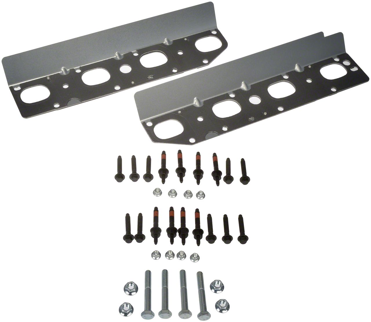 Construction and Appearance. Featuring a raw metal finish, the included exhaust manifold gaskets are built for durability and heat resistance, ensuring proper sealing under extreme operating conditions. The installation hardware kit contains all necessary fasteners and components, each manufactured to OE-comparable standards for strength and dependability. Together, these parts provide a rugged, no-nonsense design built to withstand the rigors of daily driving and heavy-duty use.