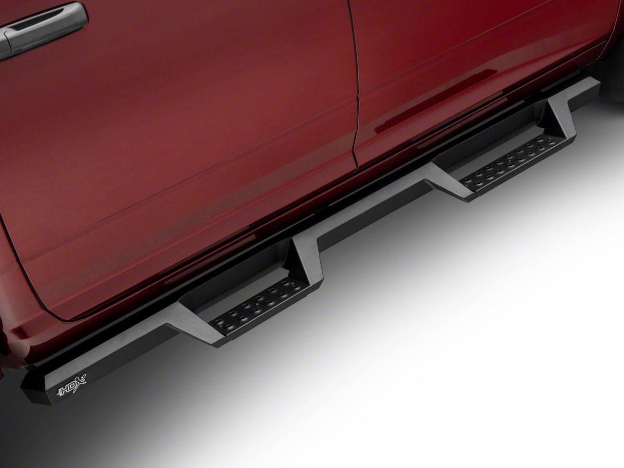 Great Finish. These HDX Textured Black Drop Nerf Step Bars have been designed to look spectacular with a black coat finish. The stepping pads are shaped to enhance the overall appearance of your truck. With the HDX bumpers blending in with the step bars, your RAM 3500 will have a great look. Improved outlook on the vehicle is further enhanced by the patented design on the steps which makes them unique. Wide step bars offer security against any road or trail hazards by providing a firm grip when you tread on in all climatic conditions.