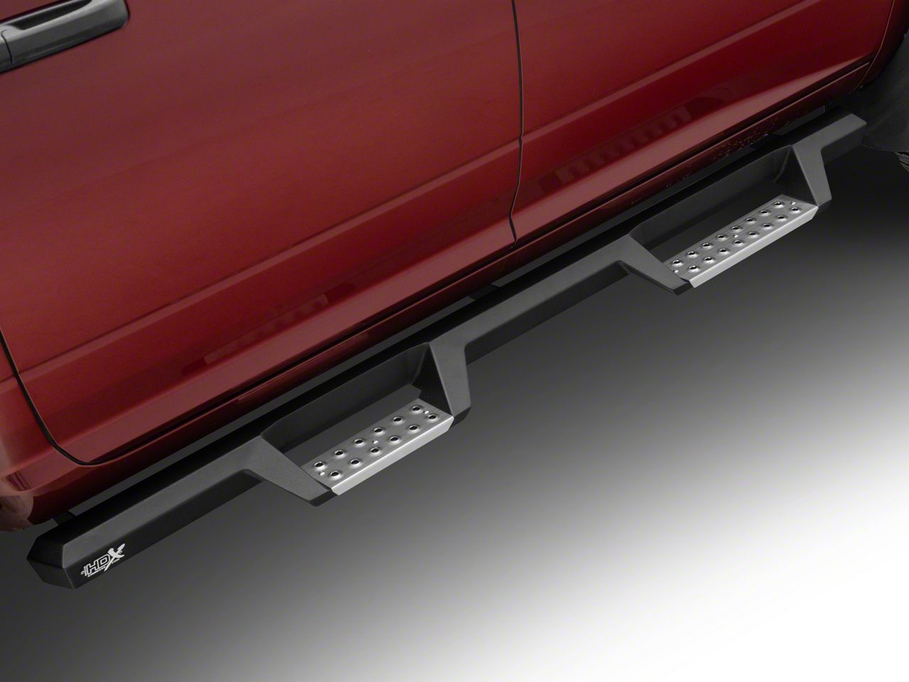 Heavy-Duty Quality. These HDX Drop BPS Nerf Side Step Bars are manufactured using high-grade stainless steel to ensure durability and heavy-duty capabilities. The step plates are rust-resistant and die-stamped so it can provide maximum traction at all times. These step plates are also removable for easy cleaning and maintenance. The entire assembly is finished with textured black powder coating for better protection against UV damage, corrosion, and other elements.