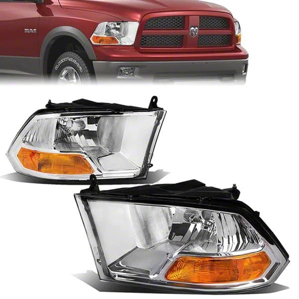 Headlights with Amber Corners; Chrome Housing; Clear Lens (10-18 RAM 3500 w/ Factory Halogen Non-Projector Headlights)Find parts that fit my vehicle