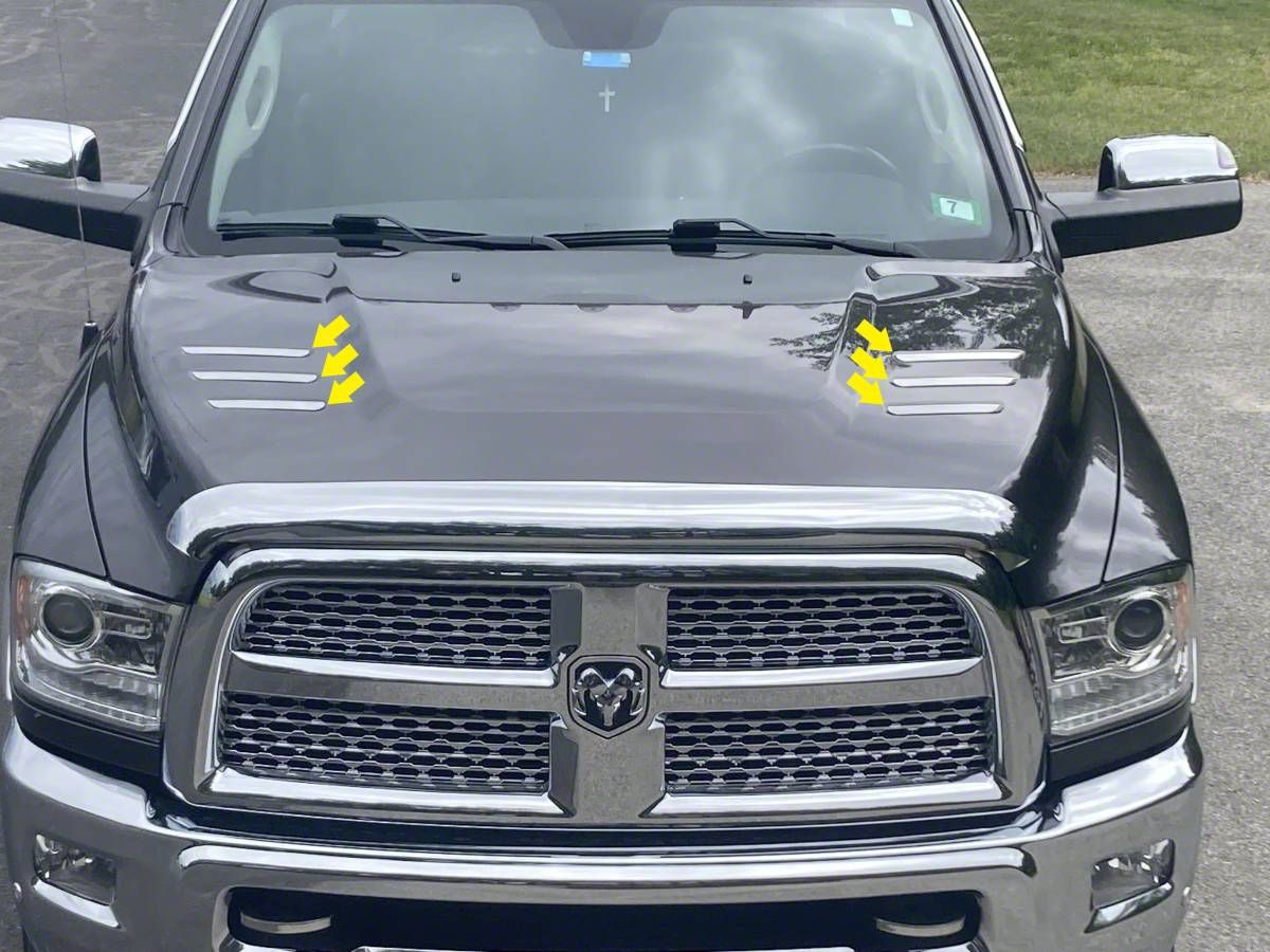 Custom Hood Styling. The Hood Accent Trim is a premium accessory crafted to elevate the visual presentation of your 2010-2018 Dodge RAM 3500. This trim offers a touch of personalization with a sleek and eye-catching finish. Whether you're showcasing your truck or simply enhancing its exterior character, this product makes an immediate and lasting impression.