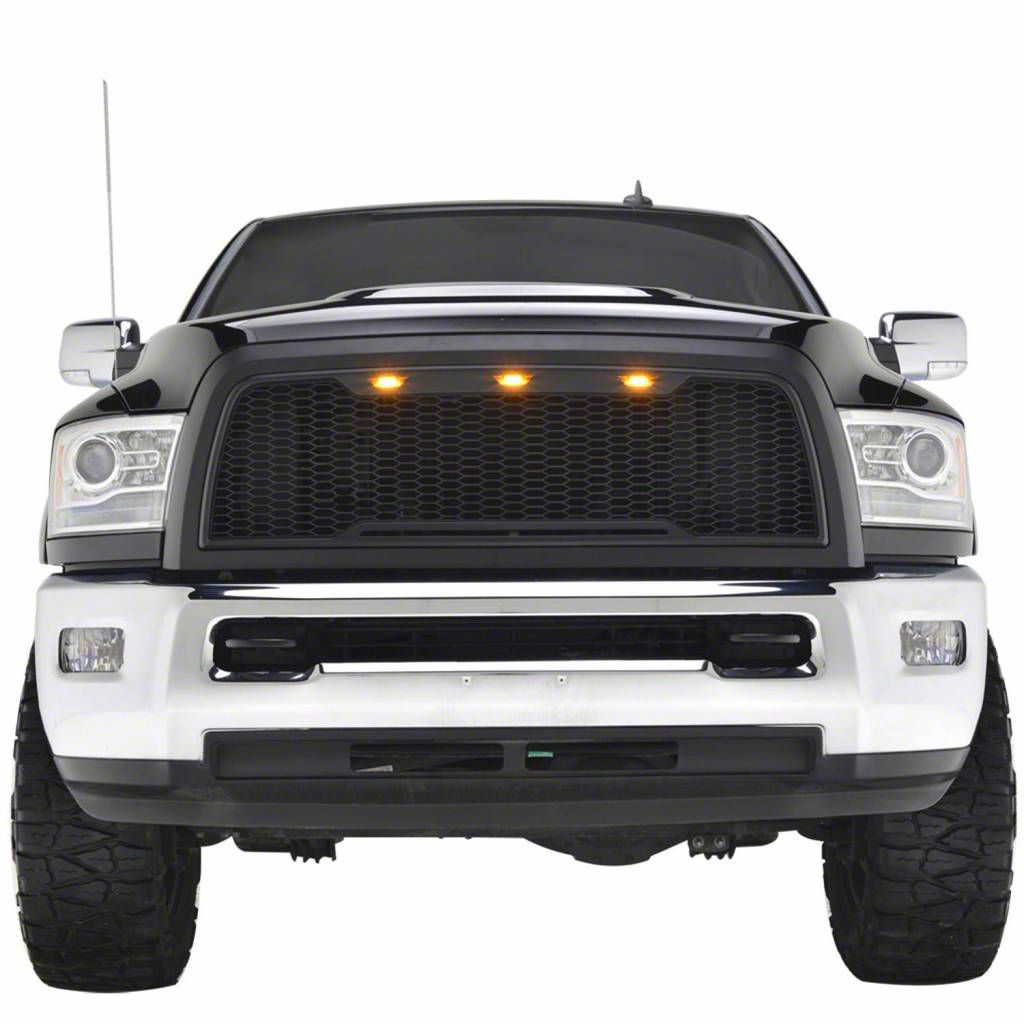 Hip and Functional. Give your RAM an aggressive yet trendy make-over with the Impulse Upper Replacement Grille with Amber LED Lights in Matte Black. This grille features an eye-catching honeycomb mesh design that doubles as protection for your radiator from road debris. It also comes pre-installed with three amber LED running lights that are highly reliable for nighttime visibility.