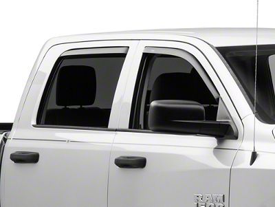 Perfect Compliment. In-Channel Ventvisor Window Deflectors are made to perfectly complement the features of your Crew Cab. In contrast to standard Ventvisors, they are installed inside the window channel for a more streamlined, low-profile appearance. They are crafted from tough reinforced acrylic that is scratch- and UV-resistant, which has a lovely smoke finish that will help block the sun from your eyes and add style to any car.