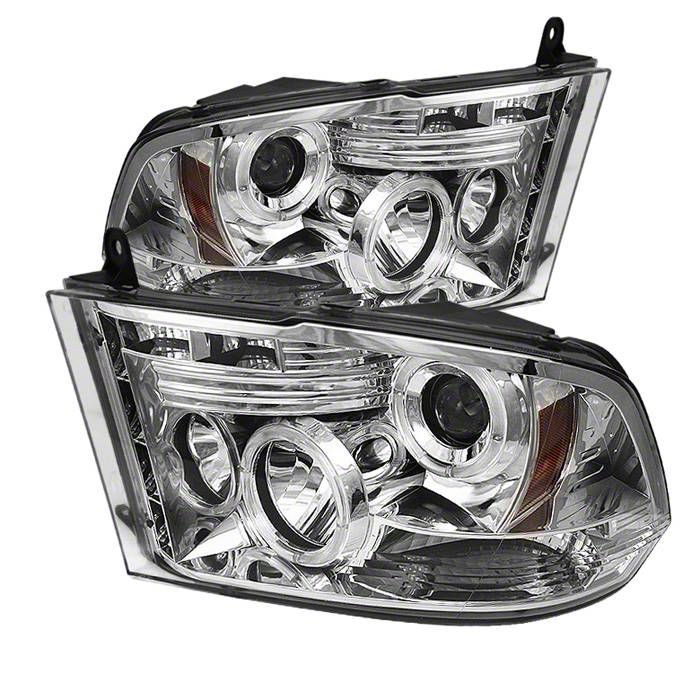 LED Halo Projector Headlights; Chrome Housing; Clear Lens (10-18 RAM 3500 w/ Factory Halogen Non-Projector Headlights)Find parts that fit my vehicle