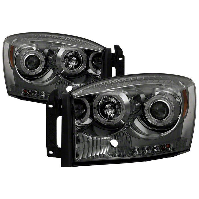 LED Halo Projector Headlights; Chrome Housing; Smoked Lens (06-09 RAM 3500)Find parts that fit my vehicle