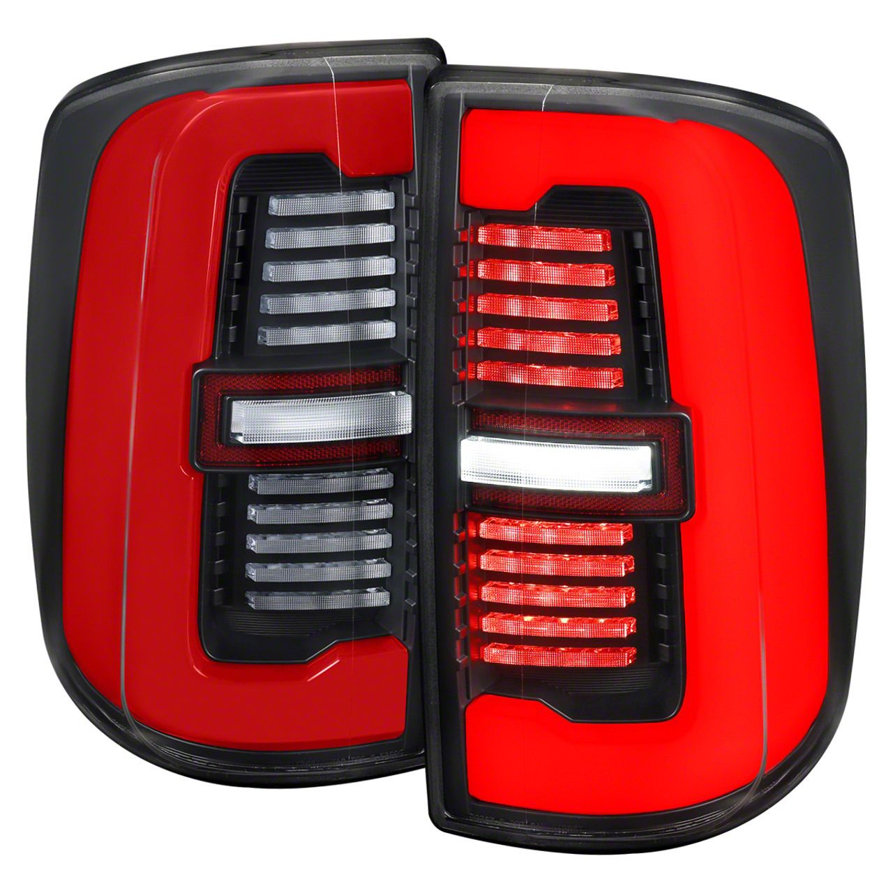 Construction and Appearance. Housed in a durable black casing with a clear lens, these tail lights are manufactured to strict OEM material and quality standards by an ISO-certified manufacturer. The integrated fiber optic LED strip/bar delivers a sharp, uniform light output, while the included 50-watt 17-ohm resistors ensure proper function without triggering error codes. Their modern design complements both stock and modified truck builds.