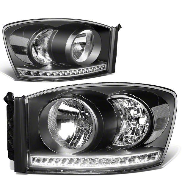 Application. The LED Strip DRL Headlights; Black Housing; Clear Lens fits 2006-2009 RAM 3500 Models.
