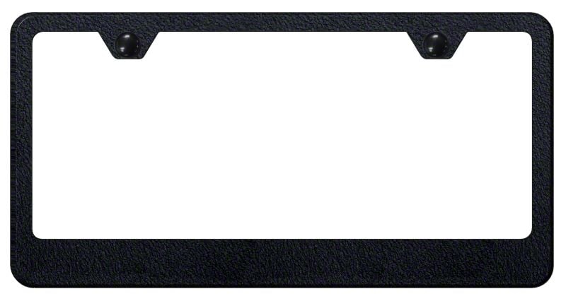 Low-Key Yet Trendy. Add a lowkey customization to your vehicle by adding a license plate frame with a rugged design. The Blank Stainless Steel License Plate Frame in Rugged Black will add a touch of attitude and uniqueness to your otherwise conventional-looking license plate. It has a wide bottom 2-hole design spanning the full length of your license plate’s lower edge. Set your plate apart from the rest with This license plate frame upgrade.