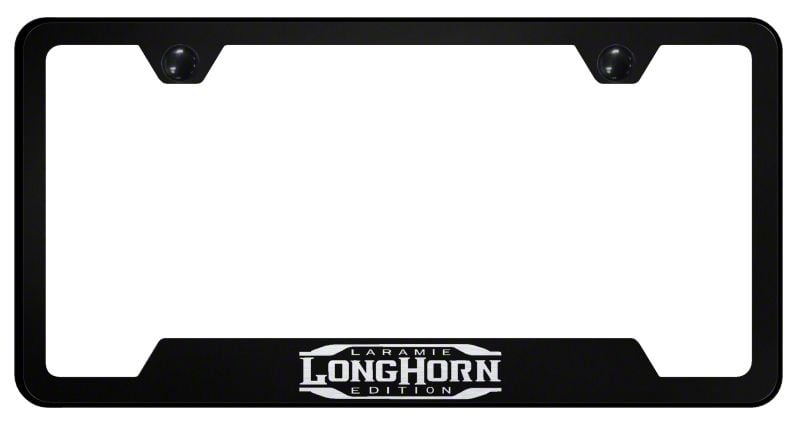 Accentuate Your Plate. Give your valued vehicle a customized touch with the Longhorn Laramie Laser Etched Cut-Out License Plate Frame. This license plate frame comes in a cut-out design with a laser-etched Longhorn Laramie logo. It is available in different colors and finishes for you to choose from: Black, Mirrored, Pink, Rugged Black, and Brushed for that distinctive, eye-catching appeal.