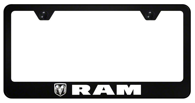 Show Off Your License Plates. If you want a beautiful, quality frame to hold your license plate, this RAM PC License Plate Frame will be just the thing. It’s made with notched, open corners and comes in sleek black. The frame features a UV print with the RAM logo and lettering. This exceptional product will keep your license plate in place even during particularly rough rides and look amazing at the same time.