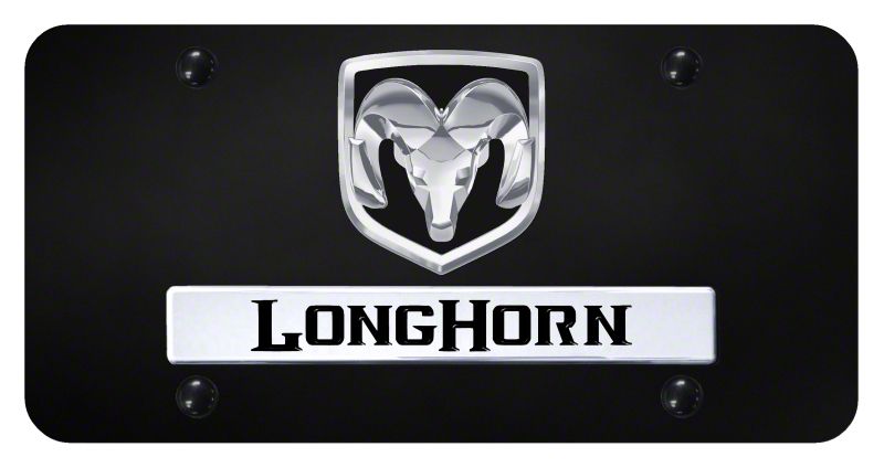 Description. License Plate; Dual Longhorn License Plate; Chrome on Black