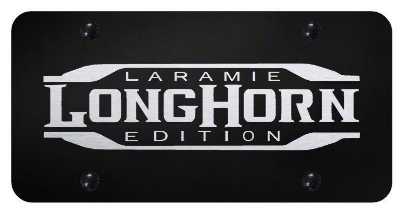 Built to Withstand License Plate. The Longhorn Laramie Laser Etched License Plate is the perfect way to add a touch of style and personality to your vehicle. Made from high-quality materials, this license plate frame is built to last and withstand the elements.