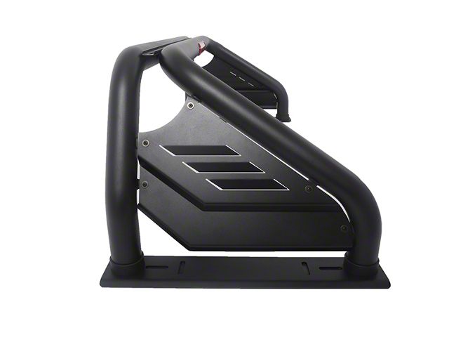 Construction and Appearance. Finished in matte black, this sport bar features a louvered design that complements your truck’s rugged look. The integrated top channel provides a dedicated mounting area for light bars or auxiliary lights, allowing for expanded visibility in low-light or off-road conditions. The durable construction ensures resistance to weather, road debris, and heavy-duty use.