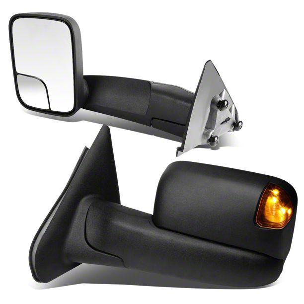 Reliable Towing Mirrors with LED Turn Signals. These Towing Mirrors are designed for 2003-2009 Dodge RAM 3500 models, providing enhanced visibility and safety for towing. Equipped with amber LED turn signals, these mirrors ensure other drivers are alerted to lane changes, improving overall road safety.
