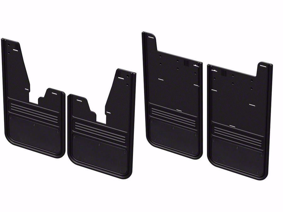 No-Drill Mud Flaps with Black Plate; Front and Rear (19-26 RAM 3500 SRW w/o Factory Fender Flares)Find parts that fit my vehicle
