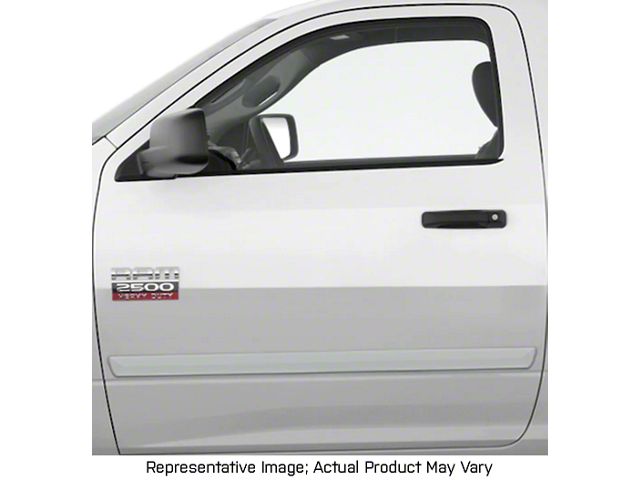 Description. Dawn Enterprises offers OEM Quality Painted Body Side Molding to protect your 2009 - 2018 Dodge Ram from shopping carts, door dings, scratches, chipping, and other road hazards. These Painted Body Side Moldings are made in the USA using only the finest automotive materials. Installing this Painted Body Side Molding to your Dodge Ram is a quick and easy process, and requires no drilling. These Dodge Ram Painted Body Side Moldings are carefully cut to perfectly fit the doors of your vehicle. These Painted Body Side Moldings carry a lifetime warranty, guaranteeing a quality product that's made to last on your Dodge Ram for years. Dawn Enterprises Painted Body Side Molding is measured and manufactured to the exact specifications of your Dodge Ram to ensure a perfect fit. These Painted Body Side Moldings lay flush on the door of your 2009 - 2018 Dodge Ram, giving your vehicle a custom, professionally installed look. This set of Painted Body Side Moldings is painted to match the color of your Dodge Ram precisely, creating a seamless and stylish look. Installing a Painted Body Side Molding Kit to your Dodge Ram will add both class and style, all while protecting your vehicle. Keep your 2009 - 2018 Dodge Ram well protected and in good condition, without breaking the bank, with a set of Painted Body Side Moldings from Dawn Enterprises. Order your Painted Body Side Moldings today!
