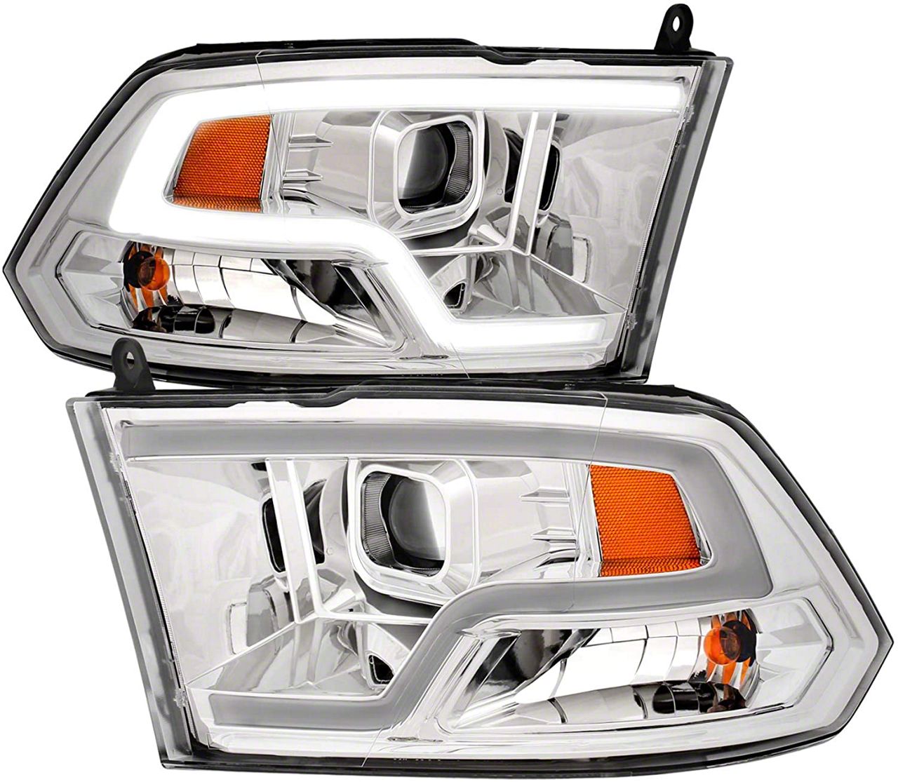 Plank Style Halo Projector Headlights; Chrome Housing; Clear Lens (10-18 RAM 3500 w/ Factory Halogen Non-Projector Headlights)Find parts that fit my vehicle