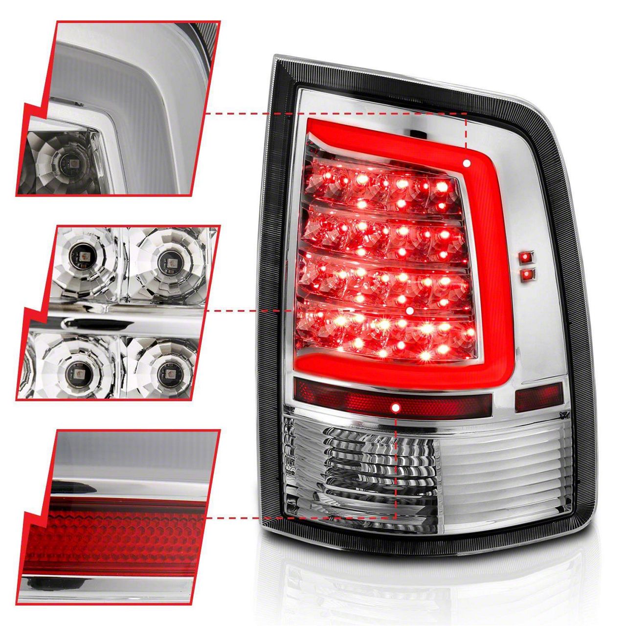 Plank Style LED Tail Lights; Chrome Housing; Clear Lens (10-18 RAM 3500 w/ Factory Halogen Tail Lights)Find parts that fit my vehicle