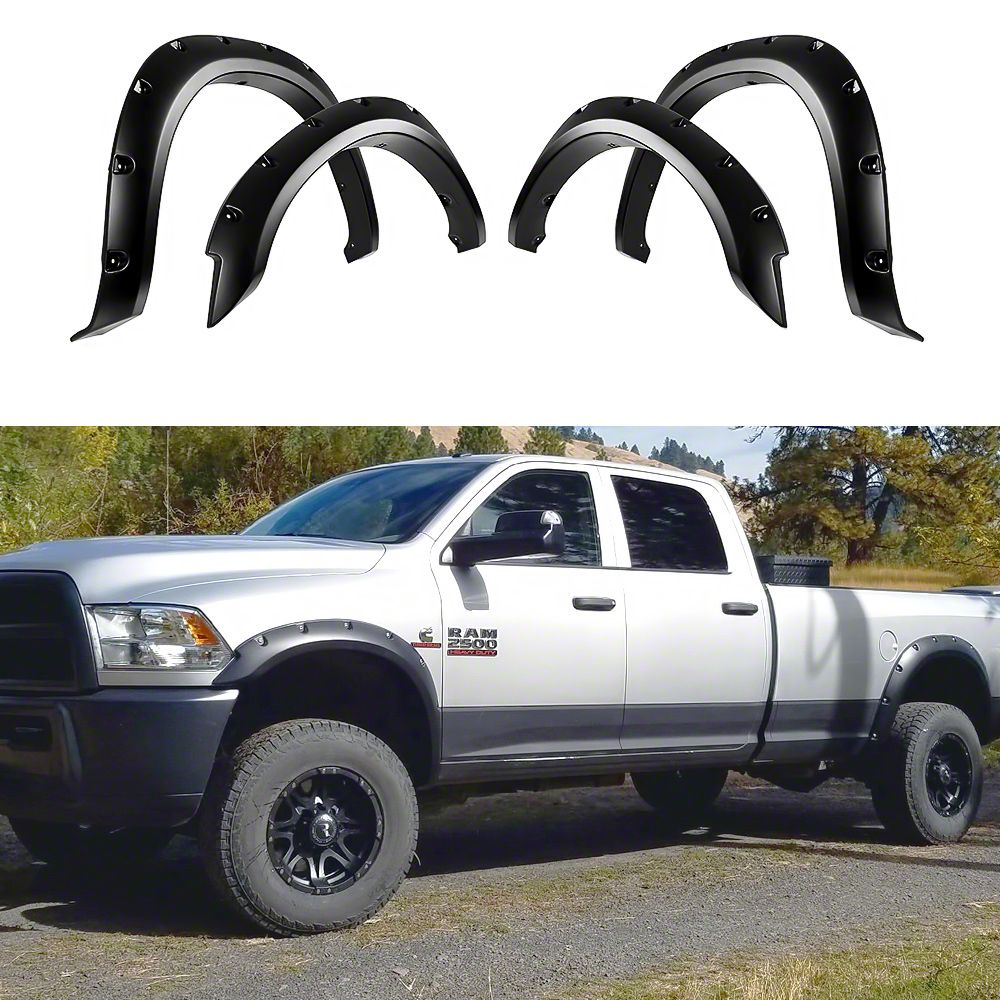 Application. These Smooth Black Pocket Dimple Style Fender Flares are designed for all the 2010-2018 RAM 3500 trucks.