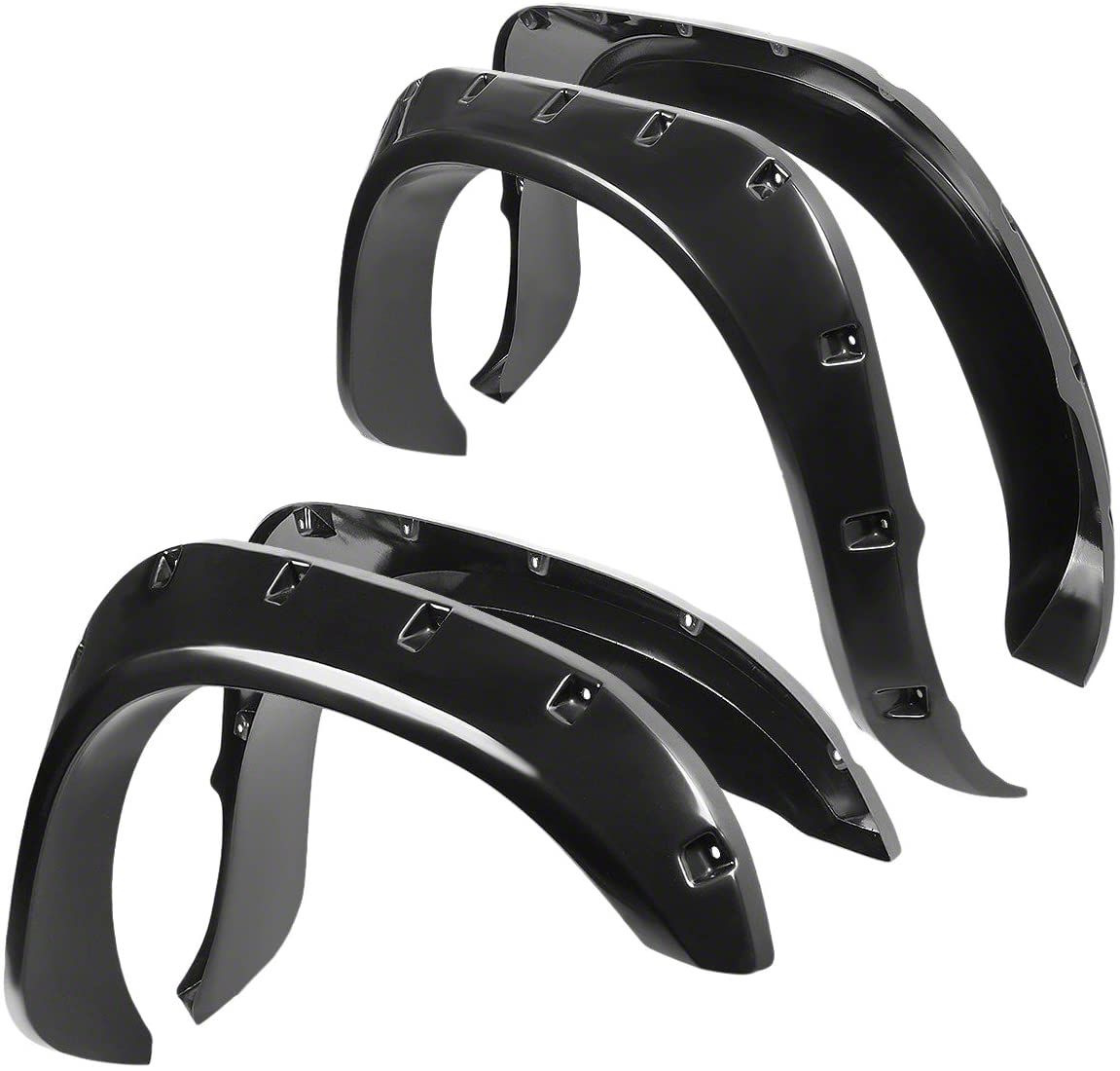 Durable Quality. Add some style and protection to your ride with these Pocket-Riveted Style Fender Flares. The glossy black finish is paintable, so you can match them to your vehicle's color scheme. They are also resistant to UV rays, meaning they'll stay looking good for years to come. On top of that, the pocket-riveted design gives them a unique look that will set your car apart from the rest.
