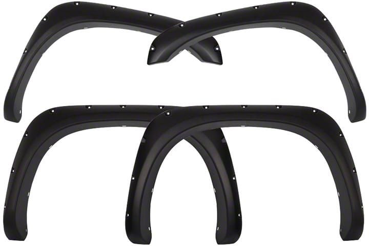 Extra Protection. Replace your standard fender flares with these Pocket-Style Fender Flares; Textured Black. The package contains 4 fender flares to fully protect your truck against flying rocks and debris. Furthermore, the additional tire allowance it gives allows you to install bigger tires onto your truck.