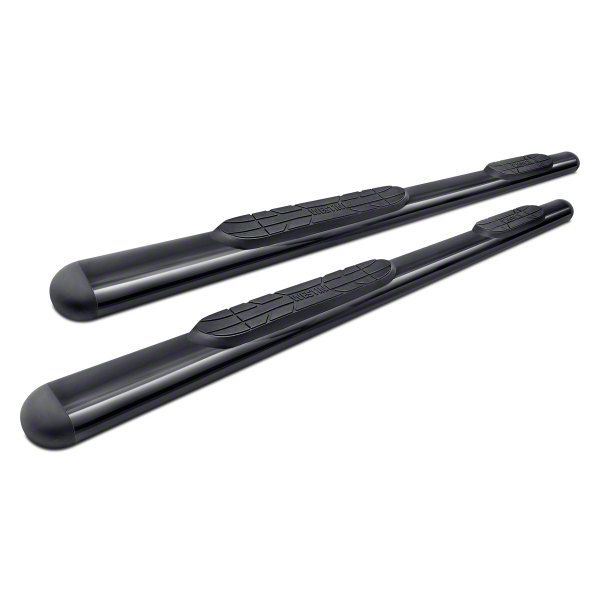 Saddle mounted step pad. Molded oval end caps. Features cradle mounted tubes and no drill installation. Black powder coated mild steel finish. 3 year warranty.