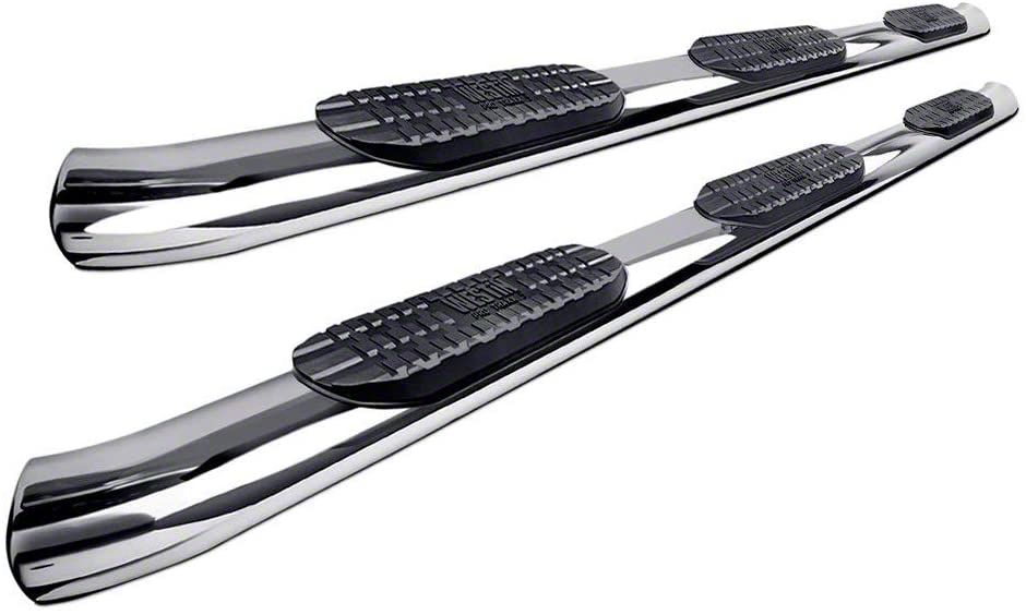 Heavy-Duty Build Quality. These side steps are machine-formed from high-grade oval steel tubes for superior durability and an accurate fit. These side step bars also feature 30-degree bends on either end for a sleek contoured look, as well as fully welded end caps for added strength. Meanwhile, the step pads are injection-molded from high-grade polymer for extreme resistance to deterioration. Rounding out their design is a wear-resistant mirror-polished finish, giving these steps a stealthy look that gets better the longer you stare at them.