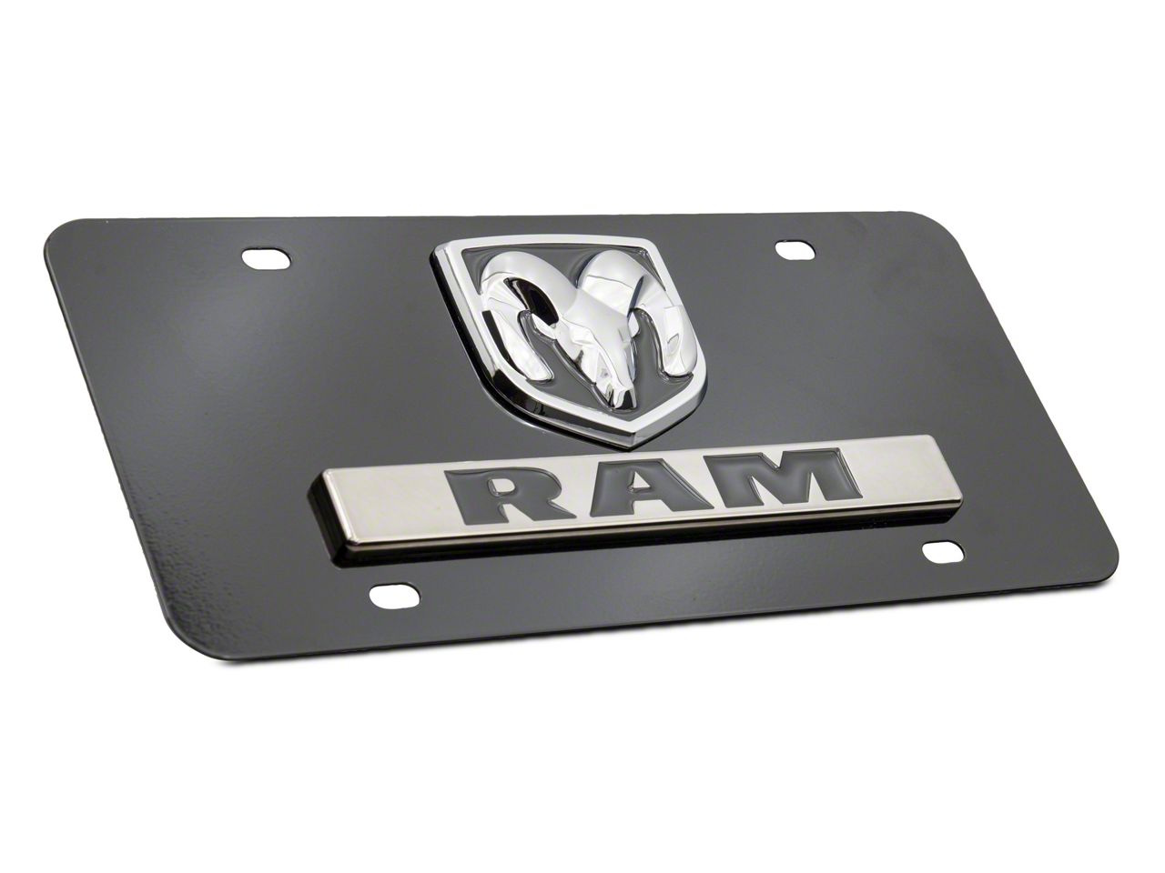 Premium Construction. This RAM Logo License Plate was precision CNC-machined from stainless steel and injection-molded ABS plastic. Its exhibits high structural rigidity and reliable durability that can handle your truck’s dynamic lifestyle. In addition, the high gloss black powder-coated finish reinforces corrosion resistance while enhancing your RAM’s aggressive visual appeal.