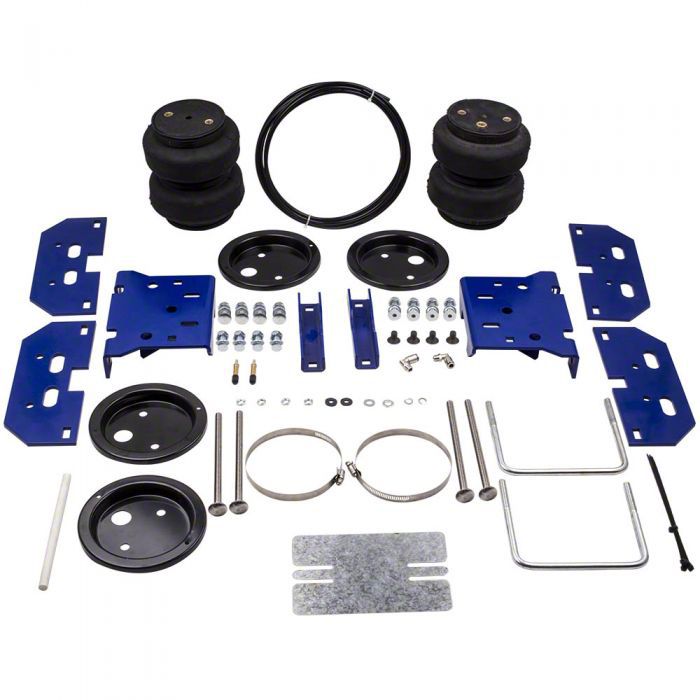 Heavy-Duty Load Support. The Rear Air Spring Helper Leveling Kit is engineered to enhance towing stability and rear suspension support for your 2003 to 2017 4WD RAM 3500. Capable of handling up to 5,000 pounds of additional load, this kit helps reduce body roll, maintain ride height, and prevent bottoming out when towing or hauling heavy loads.
