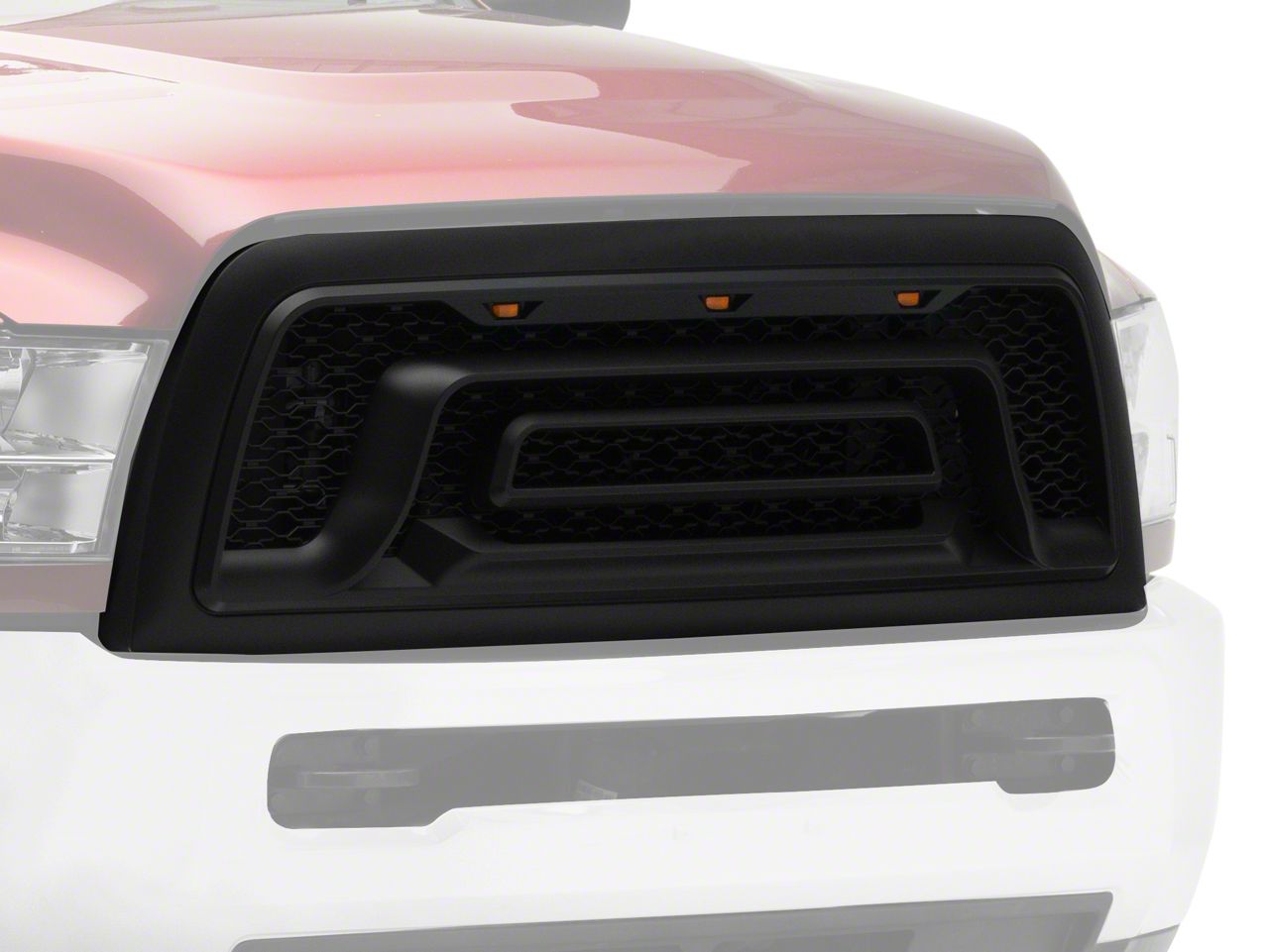 Application. The Rebel Style Mesh Upper Replacement Grille with Amber LED Lights fits 2013-2018 RAM 3500 models.