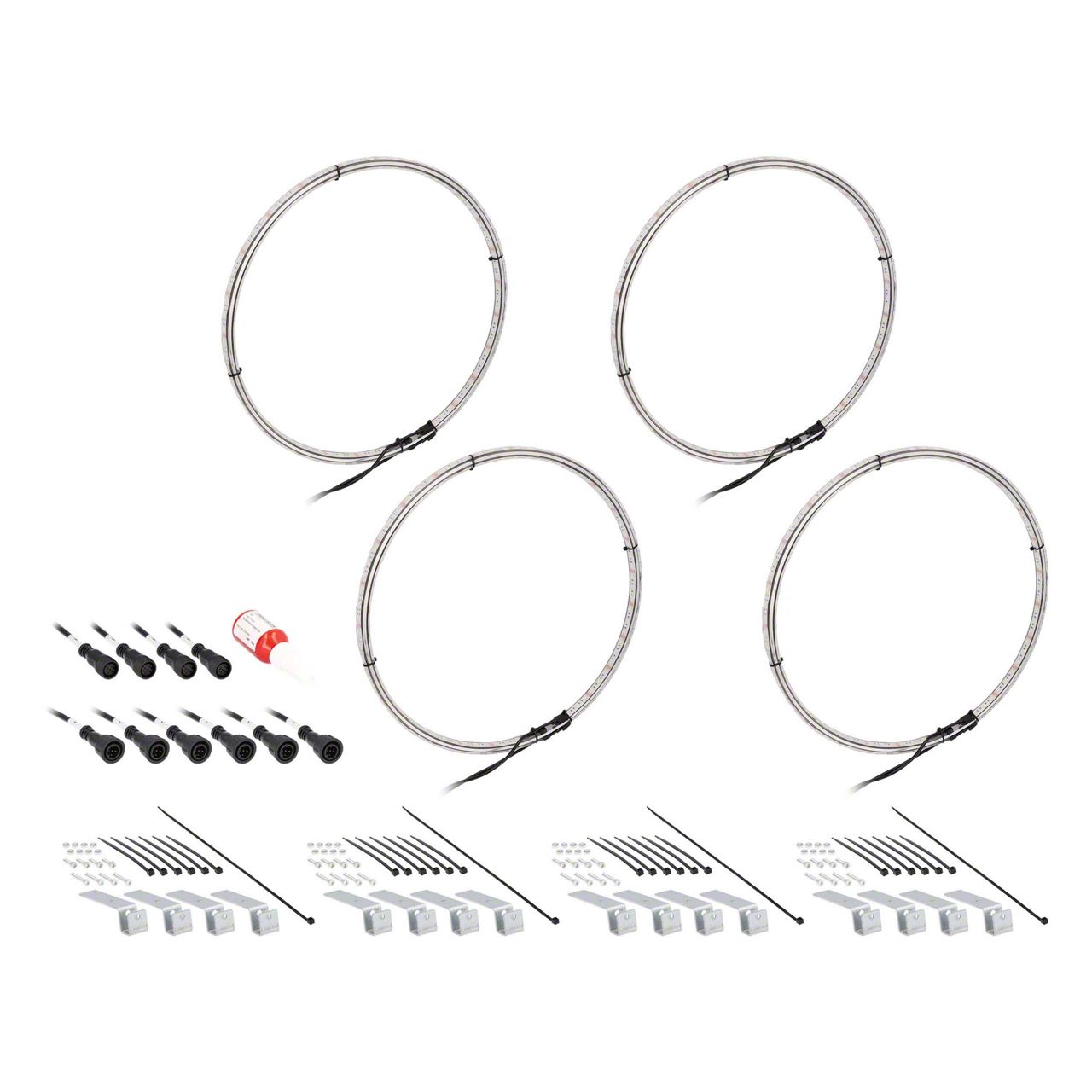 Unique Personalizing.Turn heads as you drive by with this RGBW Wheel Light Set; 15.50-Inch on your car. Sporting bright LEDs, it offers a wide range of colors even a clear bright white, unlike most RGB kits that create a blueish imitation. This kit offers more lighting options and is sure to help your vehicle stand out in any car show.