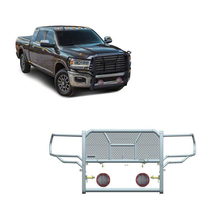 Durable Construction for Maximum Reliability. Crafted with a focus on durability, the Rugged Heavy Duty Grille Guard boasts a heavy-duty construction that guarantees long-lasting performance. What's more? The custom fit ensures seamless integration with a variety of vehicles, providing a tailored look to your Dodge RAM 3500. Additionally, the sleek black finish not only adds a stylish touch but also contributes to the overall resilience against elements.