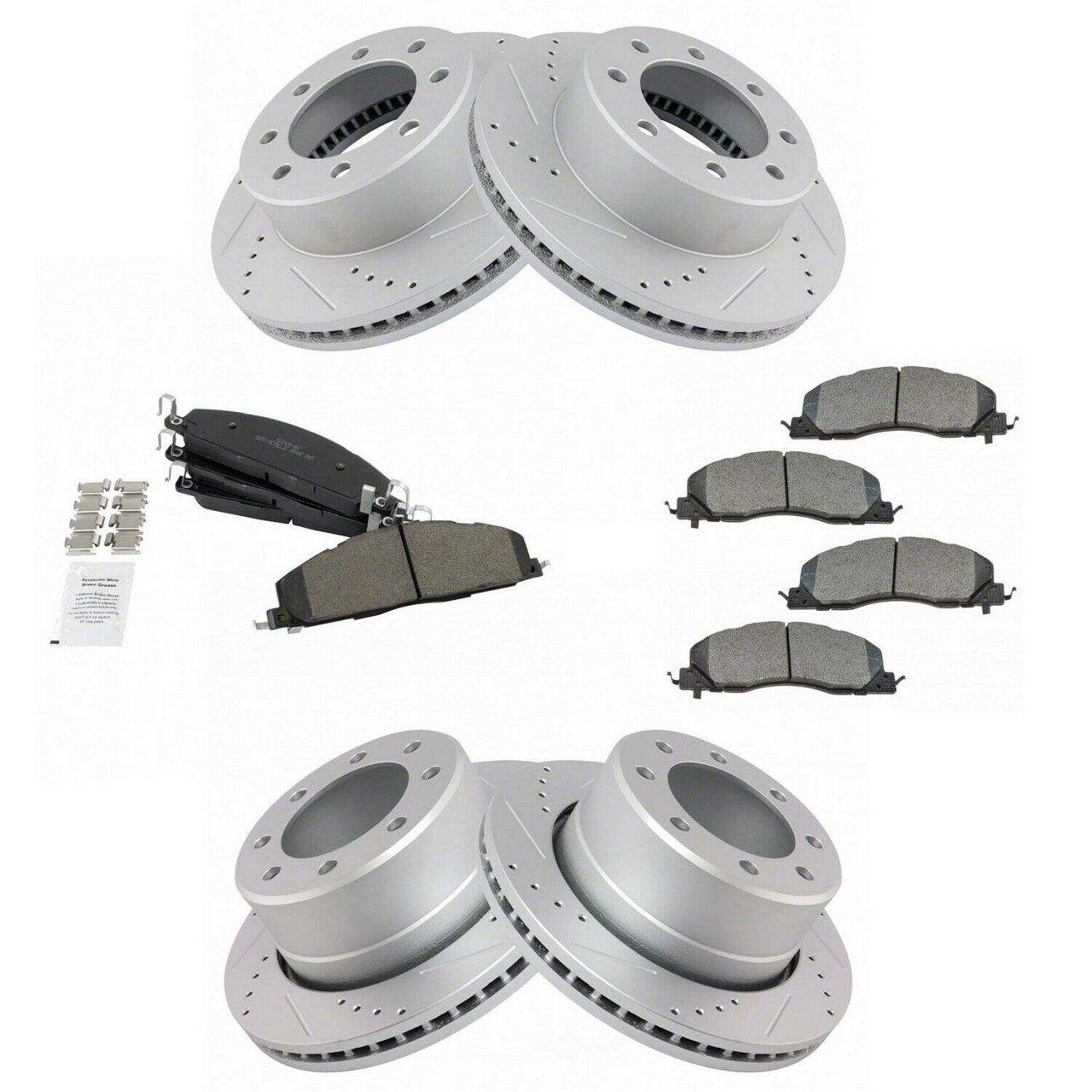 Semi-Metallic Brake Rotor and Pad Kit. Whether its on or off-road, your brakes are a huge part of your safety, make sure your driving optimally with this Semi-Metallic 8-Lug Brake Rotor and Pad Kit; Front and Rear. Designed for convenience and utility, this Replacement Brake Kit comes with everything you need to replace your worn out OE brakes.
