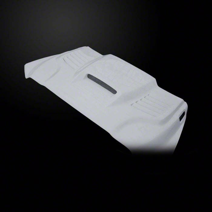 Construction and Appearance. This hood is manufactured using hand-laid, high-quality fiberglass and resin for exceptional durability. It comes with a gel-coat finish, making it ready for custom paint, and is shipped unpainted to allow for full personalization.