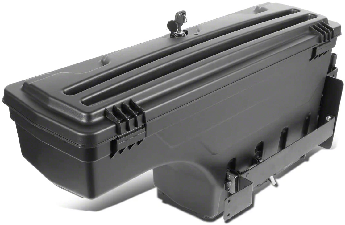 Convenient Storage. Have a better place to put your items in and prevent damage to your truck bed with this Swing Out Bed Mounted Storage Box; Driver Side for your RAM 2500. Made from lightweight plastic, it is easy to operate and handle. It is a sleek Storage case that is mounted near your tailgate, swinging outwards whenever you need to get your small tools or items.