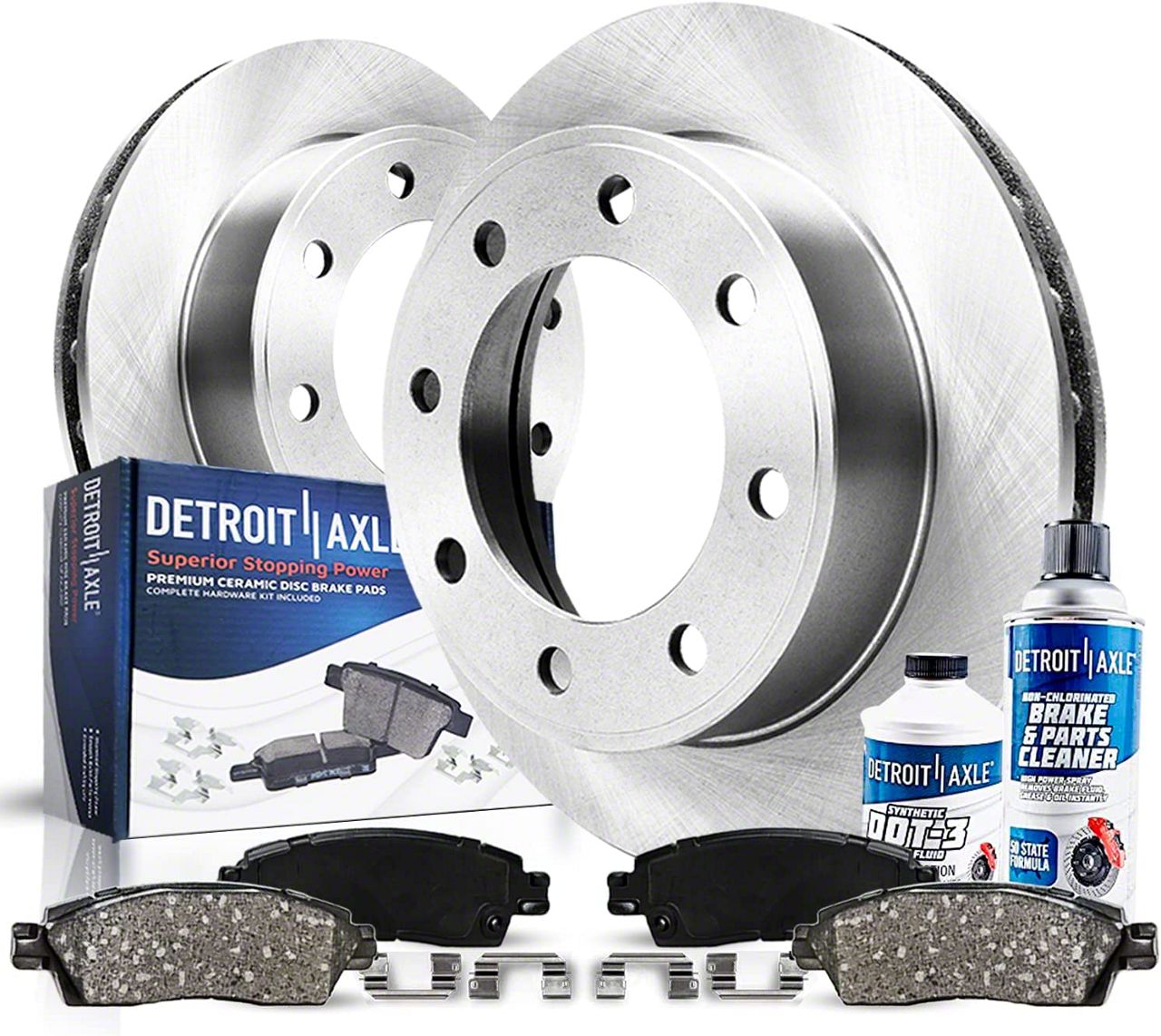 Kit Includes: (2) Rear Disc Brake Rotor + (2) Rear Ceramic Brake Pad + (2) Brake Cleaner & Fluid