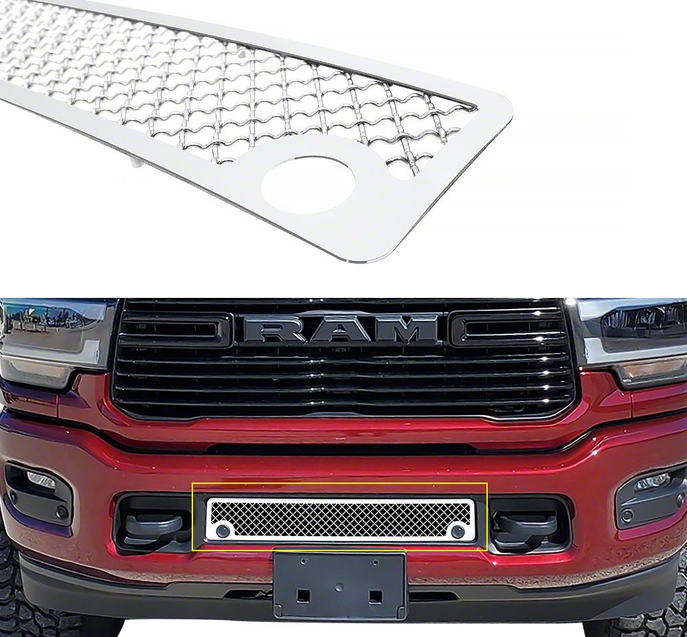 Application. The Wire Mesh Lower Bumper Grille Overlay fits 2019-2026 RAM 3500 models with Front Parking Sensors.