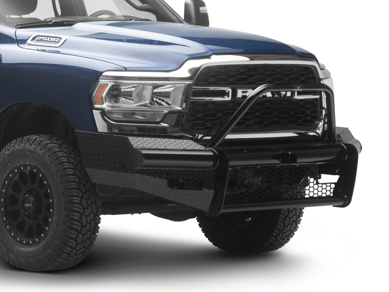 Rugged Front Protection. Upgrade to this Ranch Hand Legend Bullnose Front Bumper and drive your RAM 3500 to the rugged trails with a tough and reliable protection. This off-road armor features a full-width front coverage with a sturdy and stylish bull bar. It sports a distinctive raised diamond lug pattern that boosts your truck’s commanding presence without adding much weight.