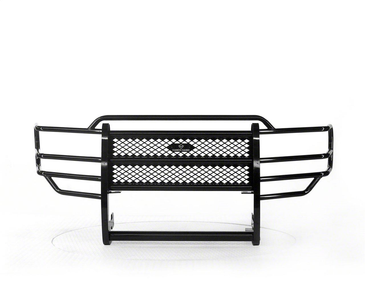 The Ranch Hand Legend Grille Guard is the icon of the vehicle protection aftermarket industry. The quality and the style of the Ranch Hand Legend Grille Guard is unmatched. You need the peace of mind that when you are out on the road, you have done everything you can to protect your vehicle and your family. Providing outstanding protection, the Legend Grille Guard has a one piece fully welded construction and is frame mounted in four locations for maximum strength and to eliminate vibration.The grille guard is constructed from 12 gauge tubing and has 5/16in. upright thickness and features punched grille inserts specifically designed to match the make and model of the vehicle – no expanded metal used. All Ranch Hand products are finished with a durable black powder coat paint. Most applications allow you to maintain factory tow hooks.
